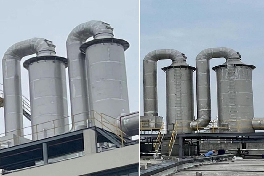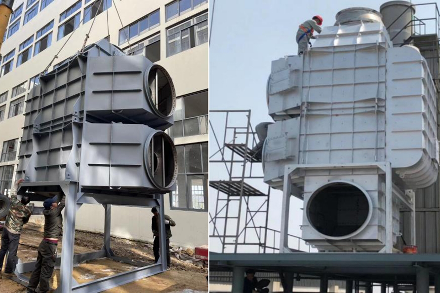 在磷化工、石墨、有色冶煉等行業,生產排放的飽和濕煙氣與低溫環境空氣接觸時,在煙氣溫度下降過程中,煙氣中的水蒸氣過飽和凝結,凝結水滴折射和散射光線,使煙羽呈白色或灰色,稱為濕煙羽。由于冬季溫度較低,相關問題的環保投訴較多。那么,有哪些種煙氣脫白技術?各種煙氣脫白的技術原理是怎樣的?1、冷凝相變煙氣脫白技術冷凝相變煙氣脫白原理為:煙氣經濕法脫硫后,含濕量上升,為B狀態,進入換熱消霧模塊后。干態空氣A入換熱消霧模塊兩者交換后,A溫度上升,含濕量不變,相對濕度降低,處于C。B煙氣,溫度降低,相對濕度不變,含濕量降低,液滴析出,轉為D。D和受熱C流出換熱消零模塊,在氣室中混合,使D溫度下降,濕度降低:C溫度上升,相對濕度上升,兩種狀態的煙氣混合,最終達到F狀態,AF連線始終處于不飽和狀態,因此,不會出現可見白煙或霧氣團??梢钥闯?,冷凝混風技術是煙氣脫白的較好技術路線,特別是在北方寒冷地區,單純的煙氣再熱很難消除煙囪白煙。2、低電耗離子束煙氣脫白技術低電耗離子束煙氣脫白原理為:高速電子射流擊穿煙氣,產生正負離子體基團,煙氣中氣溶膠、飽和水滴、微小顆粒物在離子束的撞擊下,不斷發生凝聚效應,顆粒物和水滴快速凝聚成團,在重力作用下,落到離子束除變器底部流入脫硫塔或廢水收集池,達到降解顆粒物,氣溶膠和水零的目的。廢氣中的氨氧化物,由高速電子束提供能量,快速與氨氣發生還原反應,生成副產物水。低電耗離子束煙氣脫白優點:1.放電產生的離子體中,電子能量高,幾乎可以和所有的惡臭氣體分子作用。2.反應快,不受氣速限制。采用防腐蝕材料。3.用電成本低,操作極為簡單,無需派專職人員看守,基本不占用人工費。4.設備啟動、停止十分迅速,隨用隨開,不受氣溫的影響。